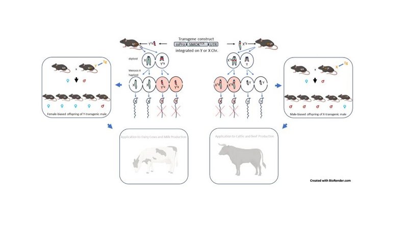 Die Aktivität von Smok-Tcr allein, ohne Störfaktor, beeinträchtigt aber ebenfalls die Beweglichkeit der Spermien, die das Gen beinhalten. Dieses Phänomen machten sich die Wissenschaftler*innen zunutze. Sie setzten gezielt Smok-Tcr-Elemente auf X- oder Y-Chromosomen ein. „Wir haben den Ansatz hier sozusagen umgedreht und nutzen Smok-Tcr, um die Vererbung des ungewünschten Geschlechtschromosoms zu hemmen, und gleichzeitig die Vererbung des gewünschten zu fördern. Liegt das Element auf einem Y-Chromosom, haben Spermien, die weibliche Nachkommen erzeugen, einen deutlichen Vorteil, und umgekehrt“, sagt Hermann Bauer, der Erstautor der Studie. „Durch gezielte Sequenzverbesserungen konnten wir den Effekt noch steigern. Befindet sich dieses optimierte Smok-Tcr beispielsweise auf dem Y-Chromosom erhalten wir fast 90% Weibchen“. Diese Methode ist vorteilhafter als bisherige Versuche, die Vererbung des Geschlechts zu beeinflussen.
