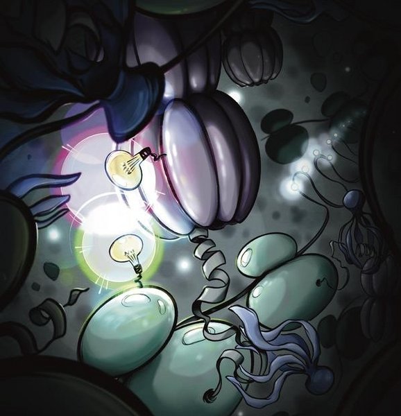 Erleuchtung des Zellinneren: Wie TRiC Proteine in der Zelle faltet. Illustration: Marzia Munafo, Copyright: Max-Planck-Institut für Biochemie