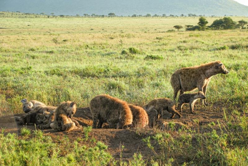 Hyänen am Gemeinschaftsbau eines Clans in Tansania. Sarah Benhaiem/Leibniz-IZW