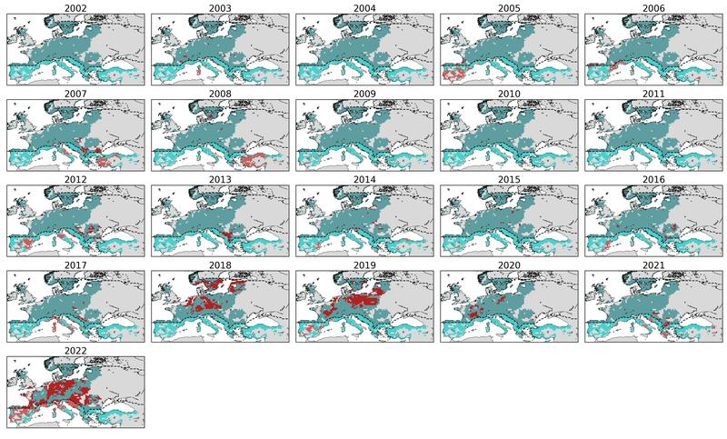 Hermann, M., Röthlisberger, M., Gessler, A., Rigling, A., Senf, C., Wohlgemuth, T., and Wernli, H.: Meteorological history of low-forest-greenness events in Europe in 2002–2022, Biogeosciences, 20, 1155–1180, doi.org/10.5194/bg-20-1155-2023, 2023