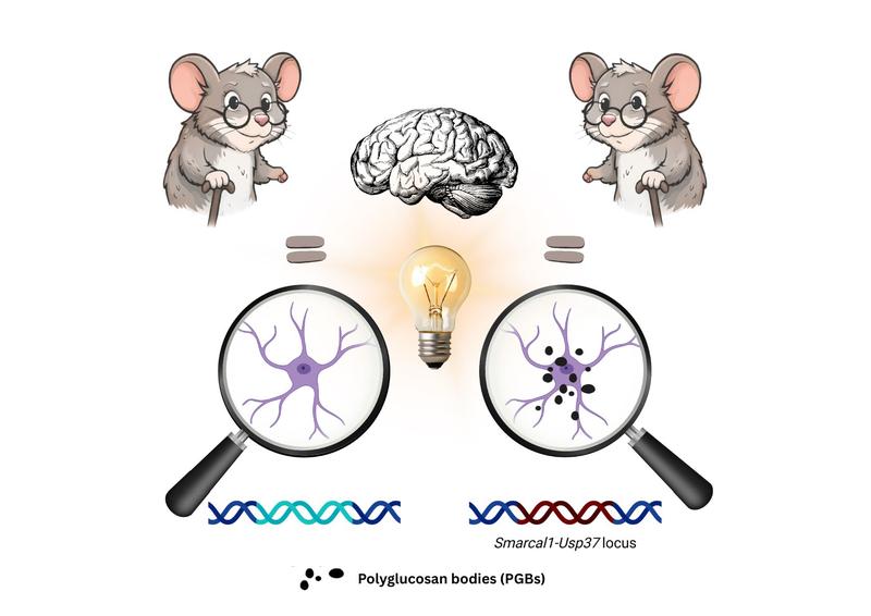Durch den Vergleich zahlreicher genetisch definierter Mauslinien kamen die Forschenden zu einem klaren Ergebnis: Ein bestimmter Abschnitt im Erbgut der Mäuse, auf dem Chromosom 1, beeinflusst maßgeblich, wie sich im Alter der Energiespeicher in den Astrozyten verändert. Dieser bestimmte Abschnitt (Gen-Lokus) wirkt wie eine Art Schalter, der das Ausmaß der Belastung durch PGBs bestimmt. Interessant ist, dass nicht die Nervenzellen selbst davon betroffen sind, sondern ausschließlich ihr unterstützendes Umfeld. Da Astrozyten für den Gehirn-Stoffwechsel unverzichtbar sind, wurden Veränderungen in ihnen oft als Warnsignal für eine spätere Erkrankung interpretiert.