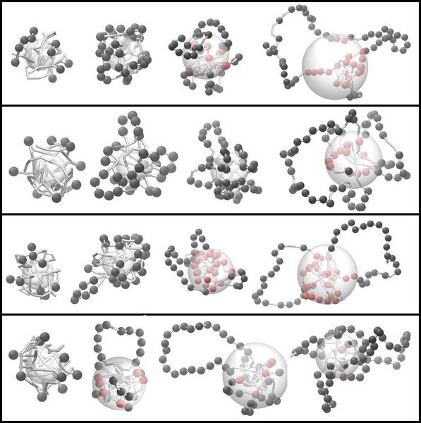 Die Forschenden entwickelten eine Computersimulation, die genau diesen Vorgang nachstellt. In der Simulation faltet sich die DNA mit jedem weiteren eingefügten Transposon Schritt für Schritt auf. So dehnen sich die betroffenen Bereiche des Erbgutes aus und es schieben sich Schlaufen aus dem Erbgut hervor, in denen sich die neu gelandeten Transposons häufen.