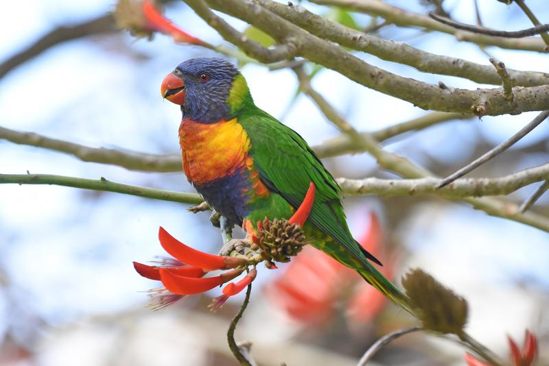 Kolibris, Nektarvögel, Honigfresser und Papageien (wie der hier abgebildete Regenbogenlori) ernähren sich von extrem zuckerhaltiger Nahrung.