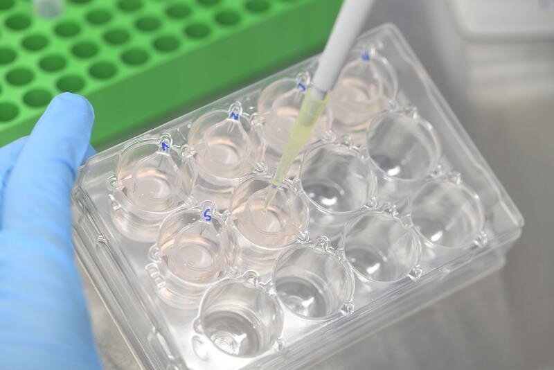 Die Organoide werden automatisiert in hoher Stückzahl im Bioreaktor entwickelt und anschließend mit einem speziellen Verfahren auf Nanofasern aufgebracht. So entsteht eine sogenannte Luftmediumgrenzkultivierung, bei der die oberste Hautschicht, die Epidermis – anders als bei der Kultivierung in der Petrischale – Kontakt mit der Luft hat. Die Nanofasern sind bereits patentiert, ein Verfahrenspatent ist ebenfalls geplant.