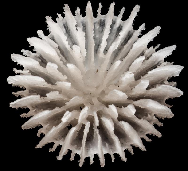 Deltocyathus zoemetallicus ist die erste hartschalige Koralle, die direkt auf den Mineralaggregaten lebt.
