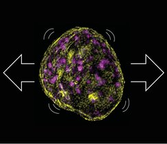 Dehnung von Geweben führt zu Faltenbildung der Zellkerne und zur Neuanordnung der DNA.